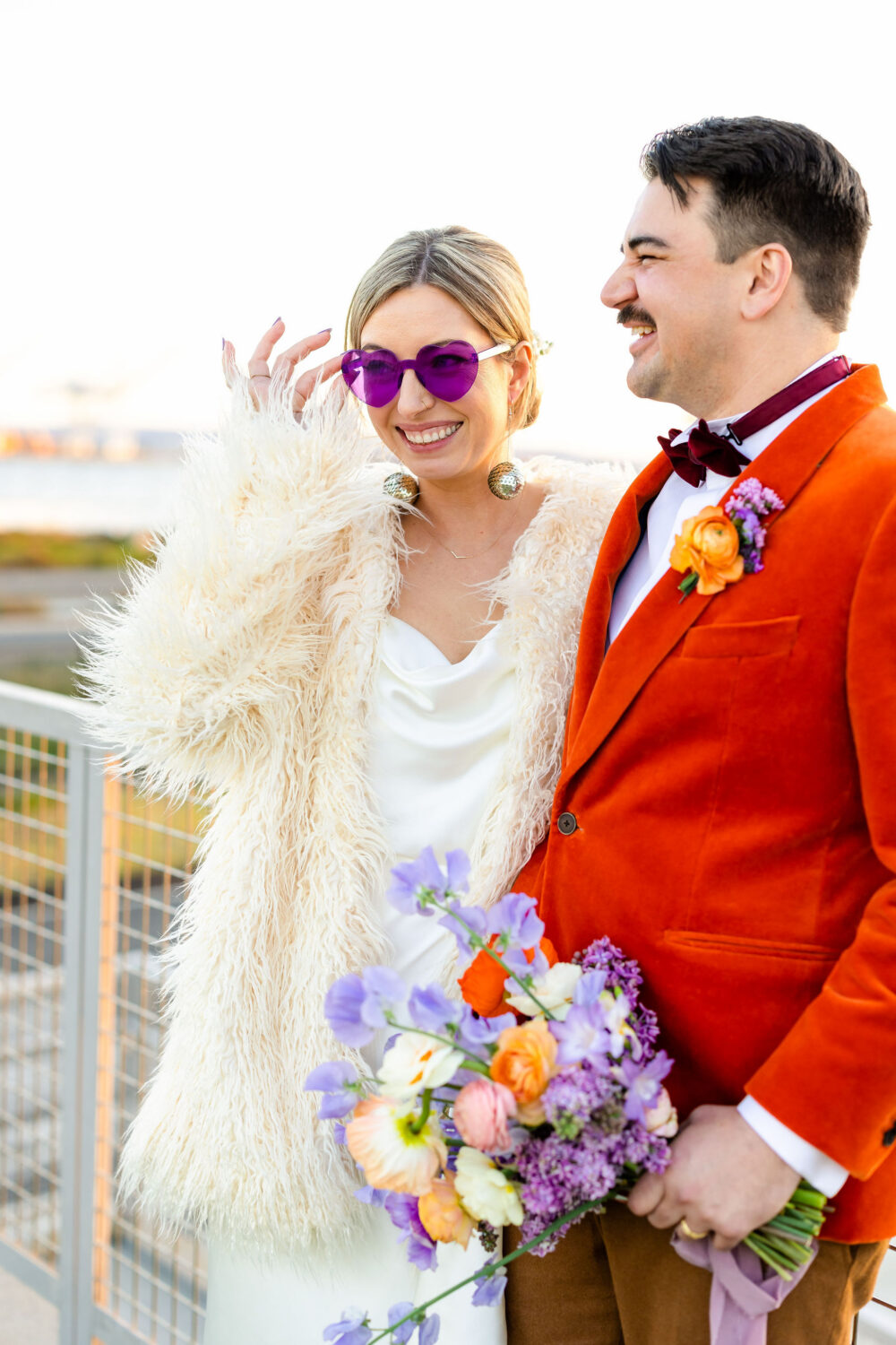 Who says you have to stick to all white? Certainly not me! Add a playful twist with colorful wedding attire like bright shoes, bold jewelry, a patterned tie, or even a non-traditional wedding outfit that’s full of color. Whether it’s just a little pop or a full statement look, it’s such a fun way to let your personality shine!